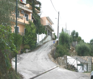 From Messongi take the road uphill towards Hlomos. After approximately half a mile turn right opposite the sign ‘Village Spileo’ onto this narrower village road. Park along here near to the 75 Steps taverna.