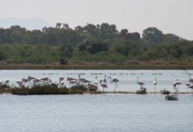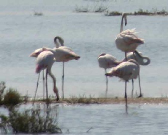 2 photos of Flamingoes taken at the saltpans at Lefkimmi